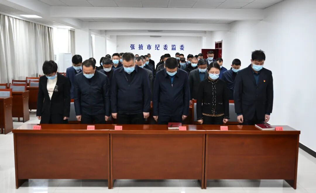 张掖市纪委监委组织全体纪检监察干部集中收听收看江泽民同志追悼大会,集体默哀三分钟,对江泽民同志逝世表示沉痛哀悼和深切缅怀。